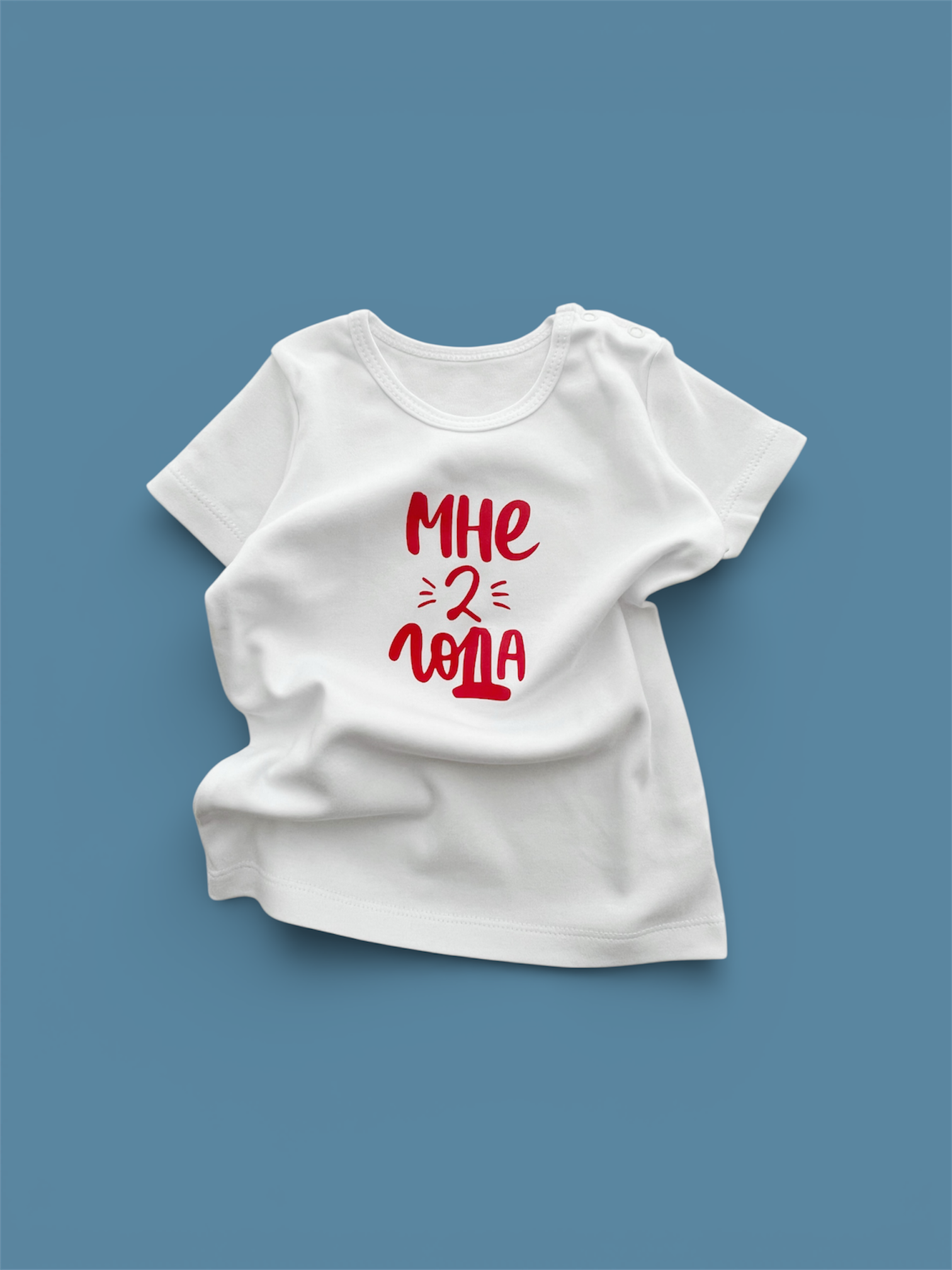 Белая футболка "Мне 2 года" (красный) – купить за 450 ₽ | Dada•Moccs