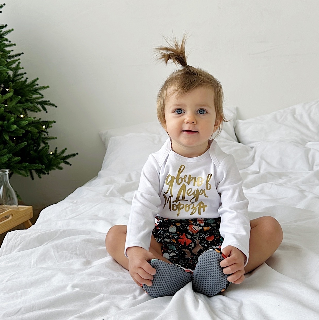 Комплект – боди с новогодним текстом, блумеры и моксы – купить за 4 375 ₽ | Dada•Moccs