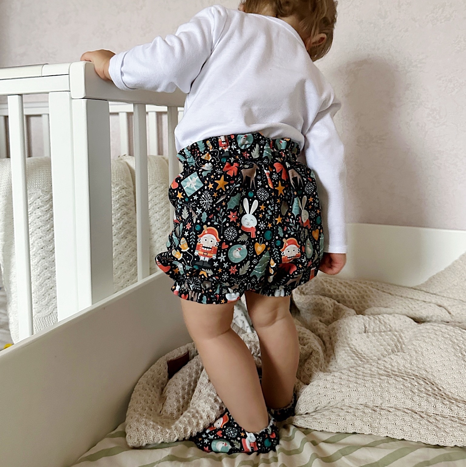 Комплект – боди с новогодним текстом, блумеры и моксы